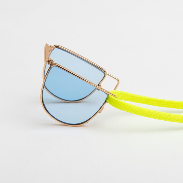 UVカットのサングラスとローネットの機能を合わせ持ち、ポップな印象に仕上げました。