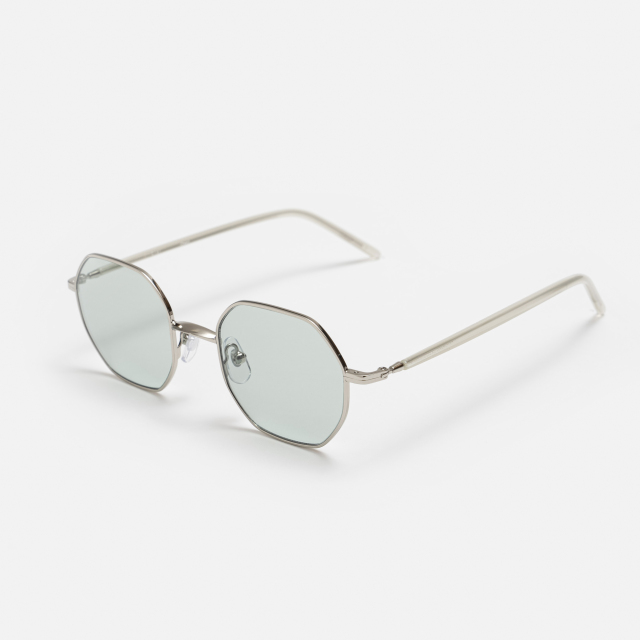 多角形フレームの顔なじみの良さと、ゆとりあるサイズ感が特徴のメタルフレームです。