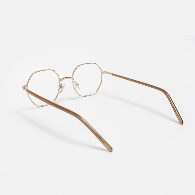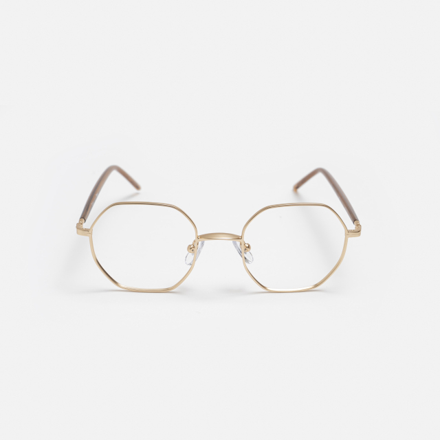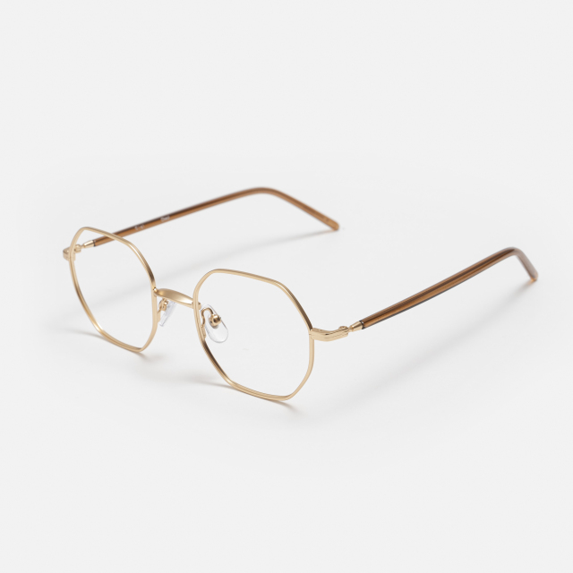 多角形フレームの顔なじみの良さと、ゆとりあるサイズ感が特徴のメタルフレームです。